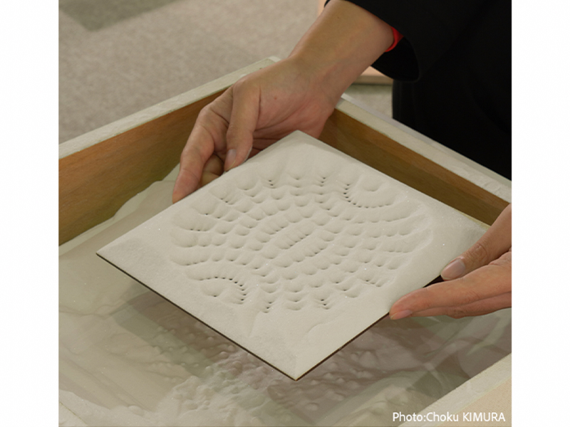 厚紙を好きな形に切ったり穴を開けたりして、その上から砂をかけてみましょう。砂がすき間を通って落ちると、点と点の間に広がるふしぎな模様があらわれます。「ボロノイ図」をテーマに、自然の中にもひそむ、かたちのしくみを体験しよう!