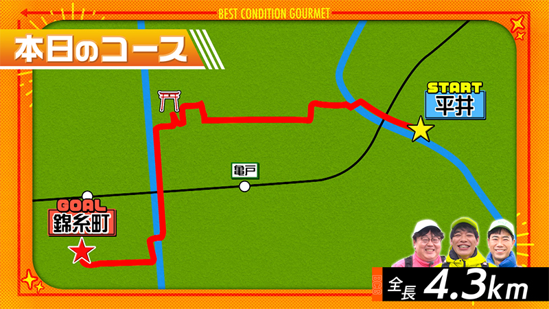 今回、川島さん、藤井隆さん、タイムマシーン3号関さんが歩くのは…