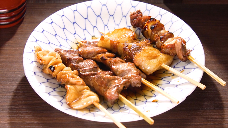 もつ焼き盛り合わせ (シロ・レバー・ハラミ・アブラ・ナンコツ) 1本 120円