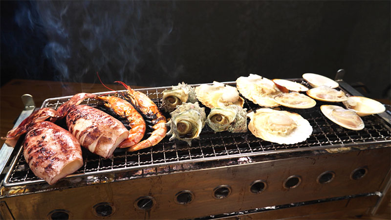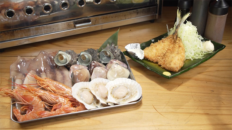 本日いただいたのは「海鮮浜焼きとアジフライ」