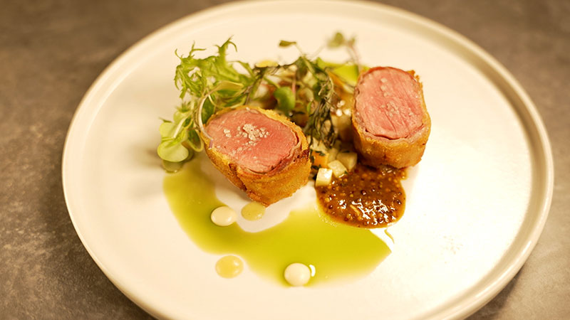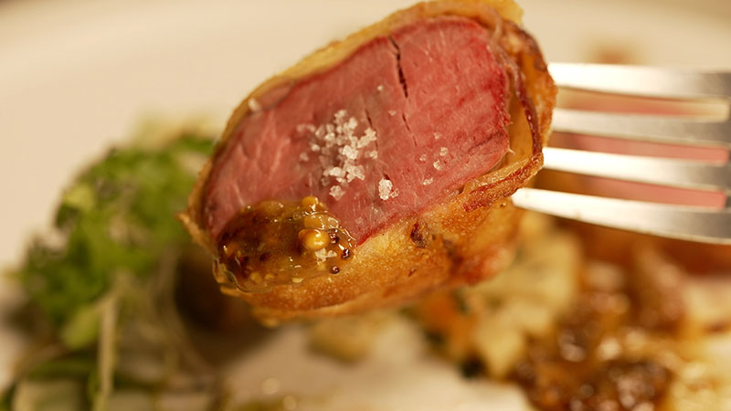 低温調理とフライパンで丁寧に焼き上げた肉に