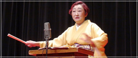 ![]() ![]() 「バカとは何よ!バカに介護されるあんたは大バカ!」高い声が会場に響く。「胃ろう」「認知症」「デイケア」「介護保険」「ホスピス」…。およそ高座に似つかわしくない言葉が次々に飛び出す。語るのは女流講釈師の田辺鶴瑛さんだ。介護現場にありがちな矛盾や制度の不備、そして自らの介護体験をコミカルに語る。これが鶴瑛さん独自の『介護講談』だ。