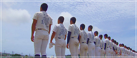 糸満高校の校歌には、その当時の人々の思いが綴られている。 戦後、復興へと向かう希望に満ちた歌詞と、 明るいマーチング調のメロディ。 70年もの間、生徒達の青春を彩り、 歌い継がれてきた重みのある校歌である。 平和な今、大好きな野球が出来る喜びを感じて―。
