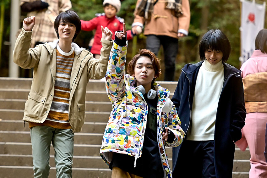 本番の前に奥平くん、宮世くん、藤原くんが「あけましておめでとうとかいらない?」などと言いながら、3人でお芝居の相談を。