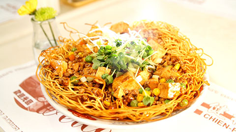 マーボー豆腐のあんかけ硬いそば 980円