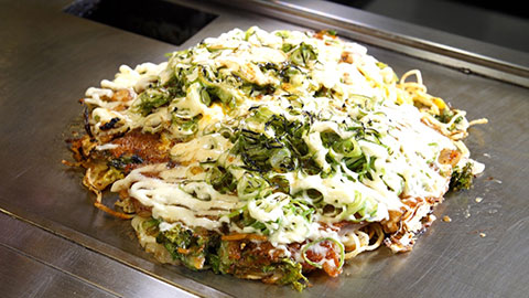 「お好み焼きの魅力は、実はキャベツ!」という井上さんがオススメする絶品お好み焼きをスタジオで堪能しました。