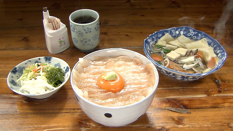 ヒラメの漬け丼 せんべい汁セット1,400円(税込)