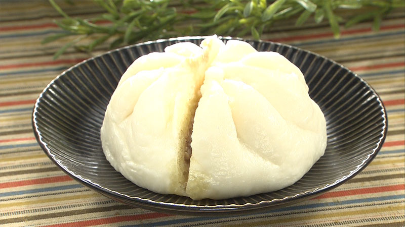 1、熱々の肉まんに縦に切り込みを入れる