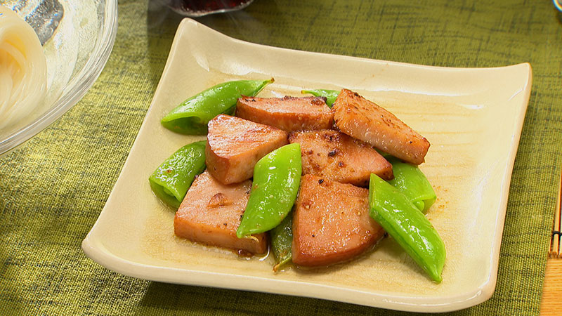 ハム/スナップエンドウ/マヨネーズ/塩/こしょう/ガーリックパウダー