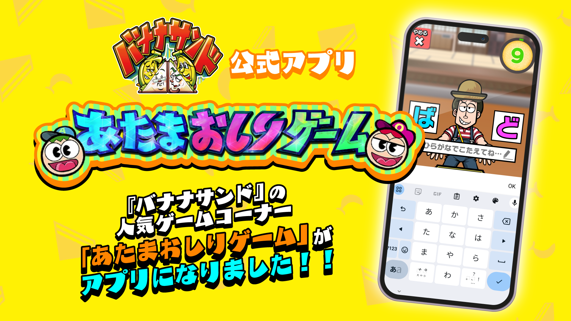 『バナナサンド』の人気ゲームコーナー「あたまおしりゲーム」がスマートフォンゲームとして販売開始!
